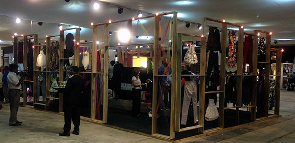 We were approached by the Joint Apparel Association Forum to create their stall for the 2015 Sri Lanka Design Festival. As ever the deadlines were tight and the budget, well, a bit limited! To further complicate matter, JAAF is a consortium of multiple Sri Lankan garment manufacturers, who all wanted as much space as possible to highlight their particular area of expertise. Since the aim of the stall was to promote garment manufacturing in Sri Lanka as a whole, we decided to try and highlight as much of the available processes as possible, telling the complete story of garment manufacturing