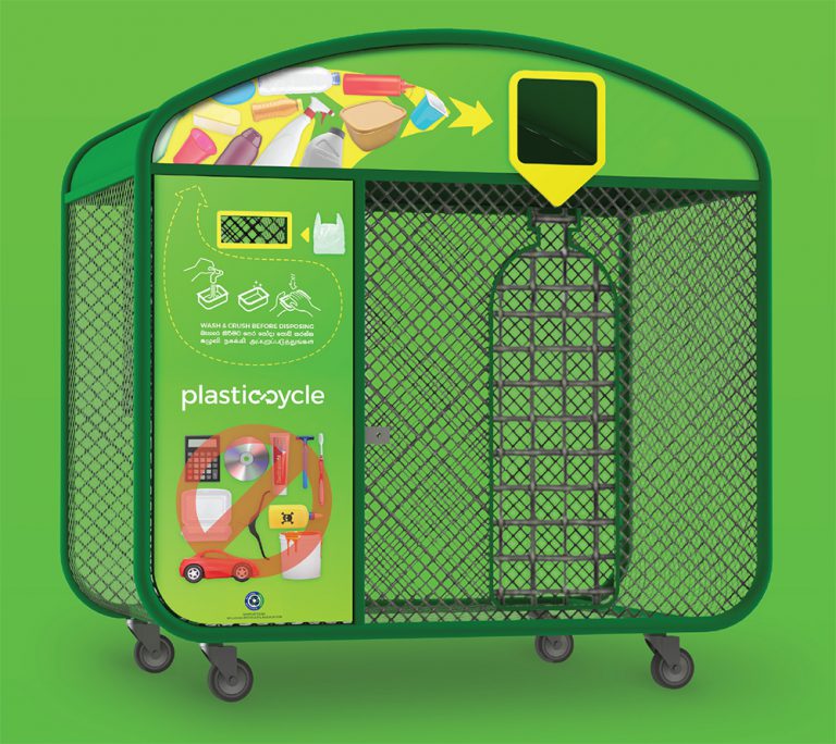 We're really excited to be working with John Keells on their new recycling initiative, plasticcycle. We won the work in partnership with DentsuGrant a month or two ago, and since then we've been working flat out to create the brand, the language and information, and to get the recycle bin designed and made in time for the launch. In truth redesigning the bin wasn't a part of the original brief, instead they were planning on using a simple, box shaped cage based on a sample used in another country, as shown below. However, we managed to pursued them that as